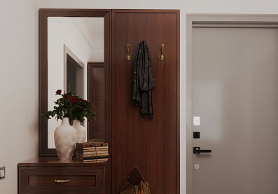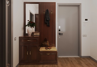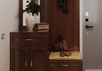 Классические прихожие характеризуются изящностью и строгостью, сочетанием изыска и удобства, а также предполагают наличие:
