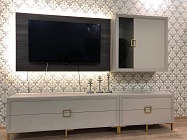 - Фасады: ЛДСП 1,6 см с наклеенным профилем, рамочный фасад со вставкой из тонированного стекла;