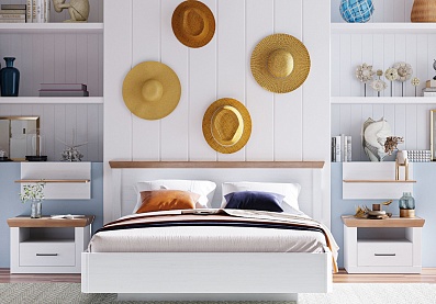 Напольный платяной шкаф, увенчанный элегантным выступом, станет великолепным дополнением для спальни в стиле кантри, эко, неоклассика, сканди. Корпус мебели изготовлен из ламинированной ДСП и имеет белое матовое покрытие «блан-шене» в противовес древесной текстуре карниза «дуб бунратти». Рамочная конструкция оформлена предельно минималистично: простые филенки гармонично сочетаются с темными ручками-скобами.