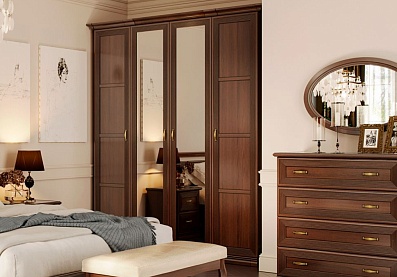 Две распашные дверцы предоставляют полный доступ к внутреннему содержимому в виде единственного просторного отделения. Наполнение мебели стандартное: верхняя полка и отсек со встроенной штангой. По запросу покупателя возможна установка четырех дополнительных полок из ЛДСП. Надежная фурнитура и прочный крепеж обеспечат продолжительный срок службы изделия. Отдельно стоящую систему хранения следует обязательно крепить к стене во избежание падения.