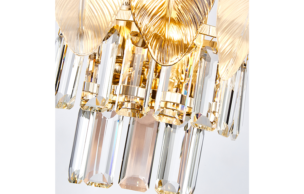 Отображение природных мотивов в предметах интерьера всегда выглядит утонченно и изящно. Это можно сказать и о нашей коллекции Dolor. Каркас коллекции в цвете золота оформлен декоративными лепестками из белого и серого стекла, которые обрамляют хрустальный водопад кристаллов высшего качества прямоугольной формы.