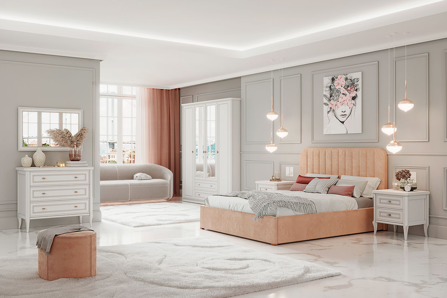 • Спальня в классическом стиле. Такая мебель подойдет к интерьерам в стиле неоклассика, контемпорари, эклектика. При создании этой коллекции наши дизайнеры вдохновлялись романтичной атмосферой и элегантностью Санкт-Петербурга;