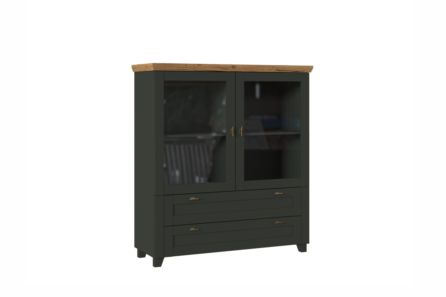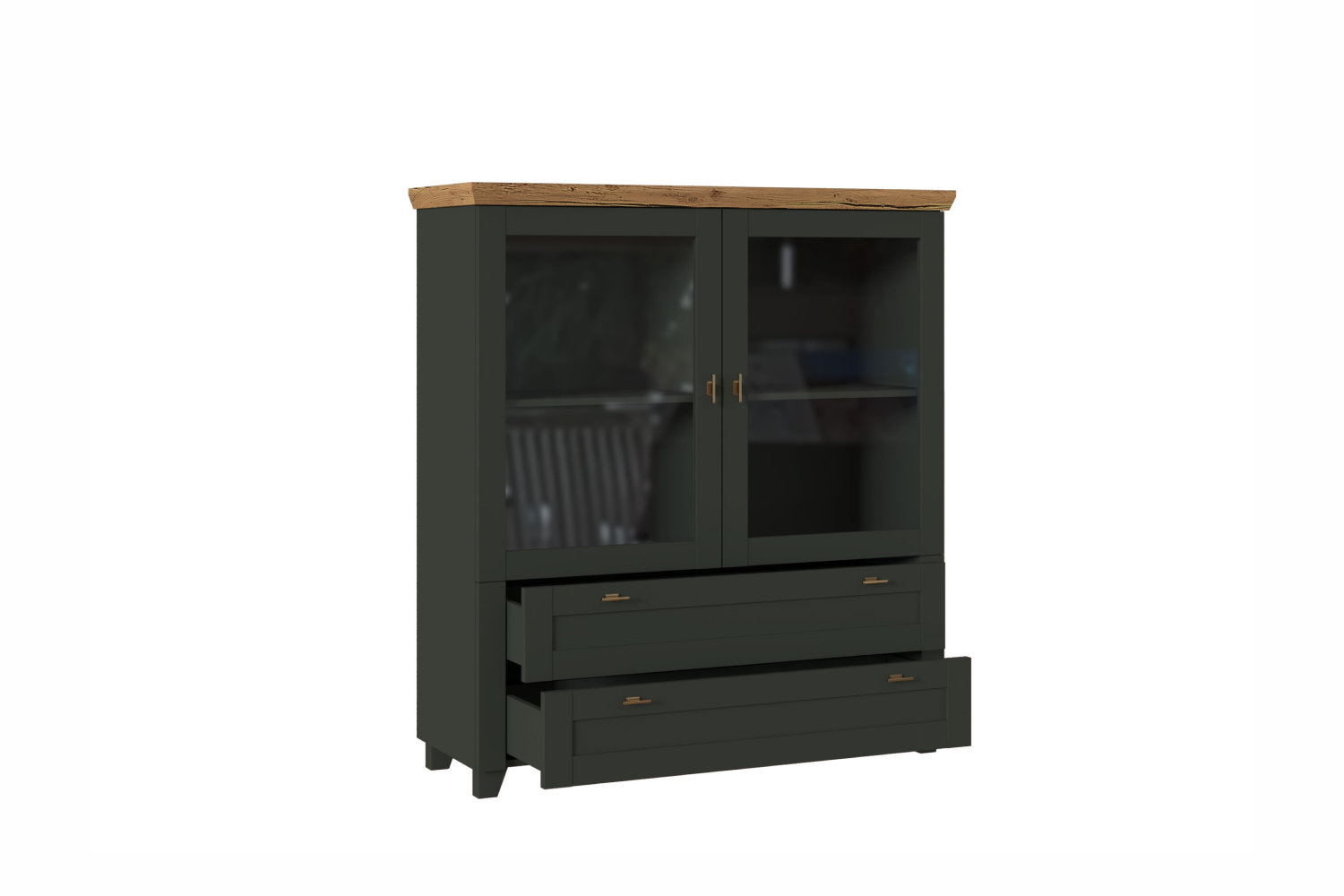 - Шкаф низкий с рамочными фасадами и двумя выдвижными ящиками;