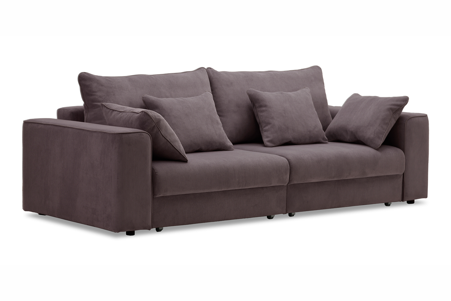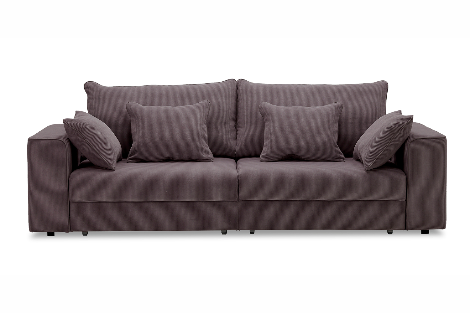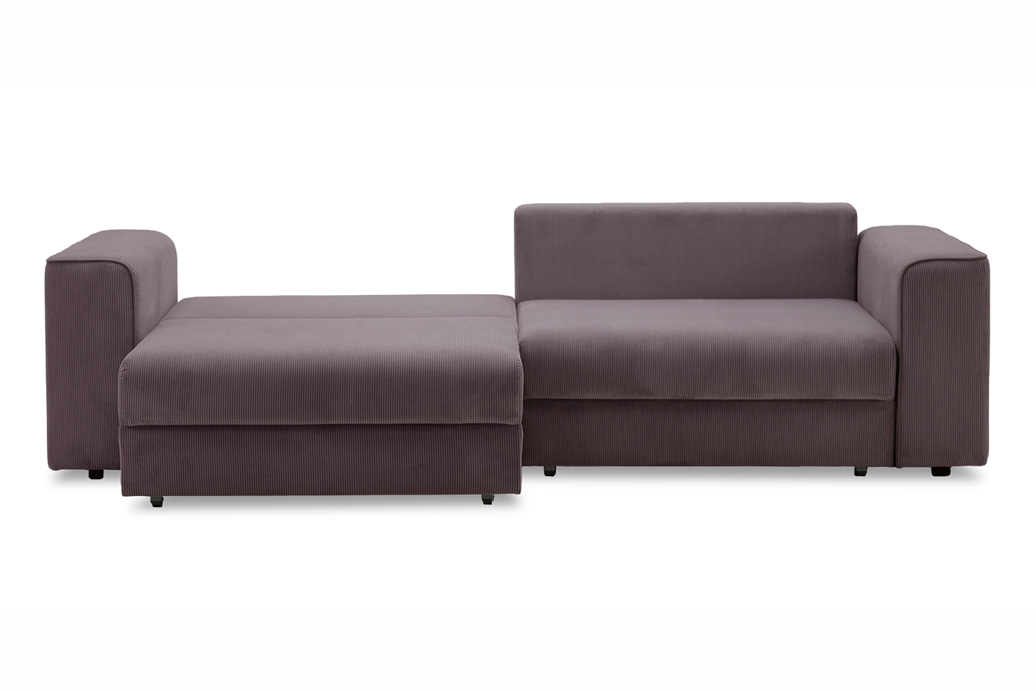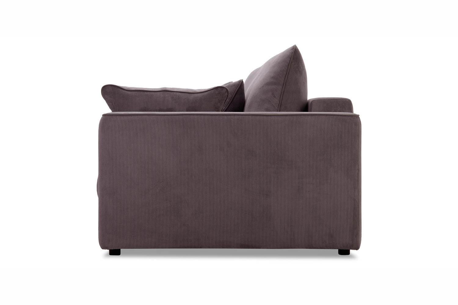 Диван выполнен в современном стиле, который будет гармонично смотреться в любом интерьере. Обивка из велюра c вертикальной текстурой актуального серого оттенка приятна на ощупь и легко чистится.