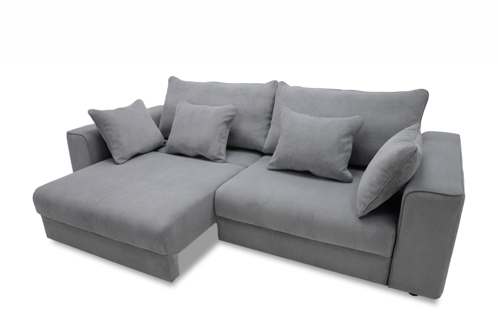 Диван выполнен в современном стиле, который будет гармонично смотреться в любом интерьере. Обивка из велюра c вертикальной текстурой актуального серого оттенка приятна на ощупь и легко чистится.